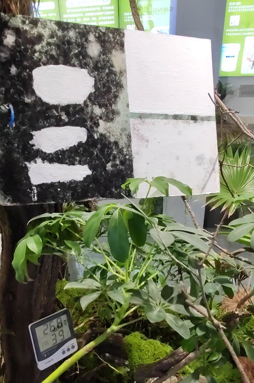 左侧除涂抹海峁防水材料处外,均长满霉斑