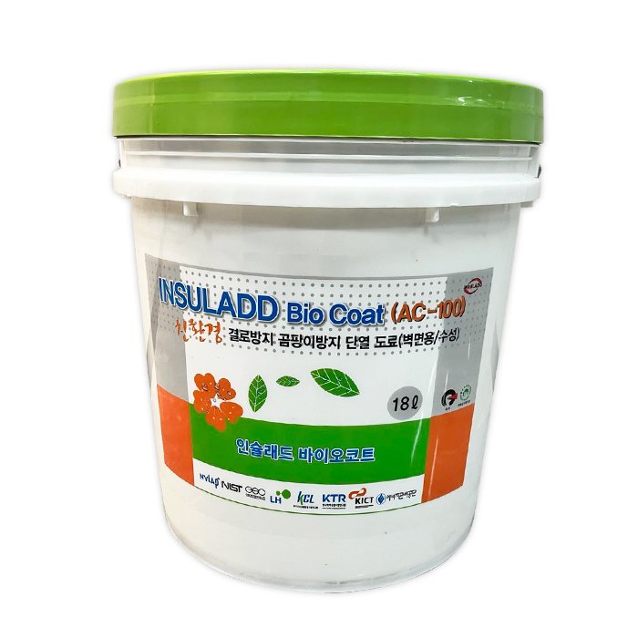 인슬래드바이오코트(AC-100)는 작업성 , 부착성 및 내후성이 매우 우수한 아크릴 에멀전 합성수지(INSULADD)와 특수한 세 라믹 및 무기질안료 등을 첨가하여 제조된 수용성의 벽면용 결로방지 ,곰팡이 방지 단열도료입니다 .