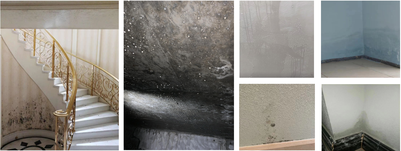 2、 结露 (冷凝水) 严重的房间 (地下室、空调口、浴室顶等)